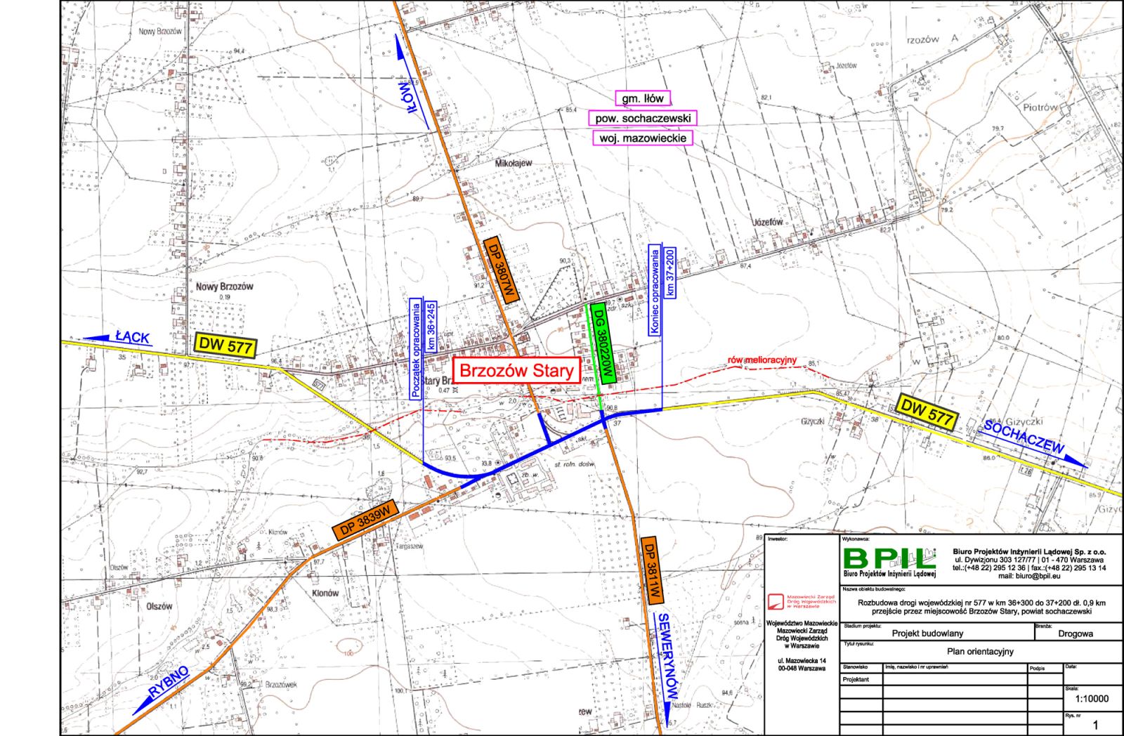 Projekt obejmował rozbudowę drogi wojewódzkiej nr 577 od km 36+300 do km 37+200 - przejście przez miejscowość Brzozów Stary, powiat sochaczewski (klasa G).