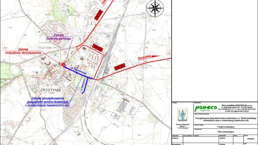 Umowa obejmowała opracowanie dokumentacji projektowej branży drogowej remontu dróg gminnych - ul. Świerczewskiego i Mickiewicza oraz budowy parkingu w ramach projektu pn. "Porządkowanie gospodarki wodno-ściekowej w ul. Świerczewskiego i Mickiewicza wraz z modernizacją nawierzchni ulic". Planowana inwestycja znajduje się w strefie ochrony konserwatorskiej związanej z fortyfikacjami miejskimi okalającymi zamek w Olsztynku.